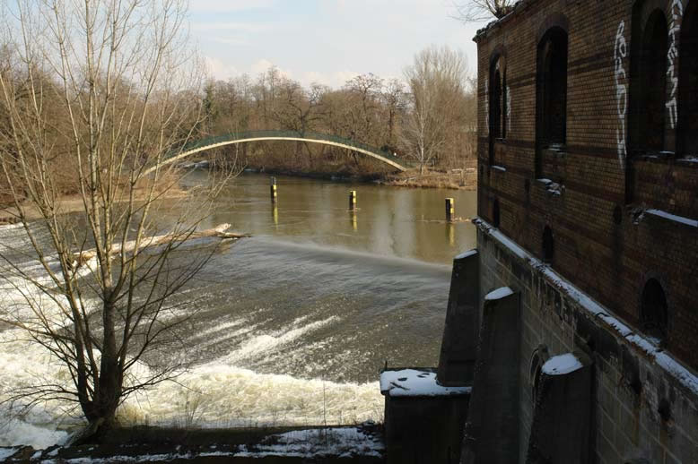 das Trothaer Wehr mit der Brücke zum Forstwerter